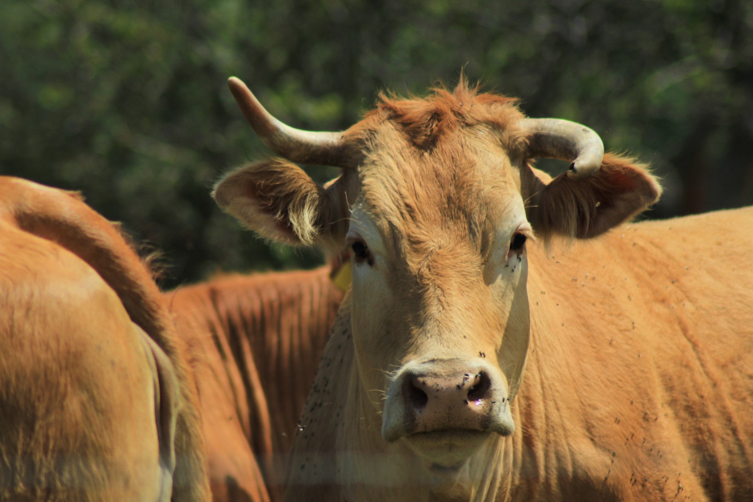 Ich Kuh dich gleich Eine Kuhherde geniesst die toskanische Sonne und das Grasland. Mit Hörnern, so wie es die Natur will. Ganz normal. auch gut: